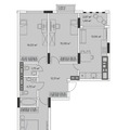 Общая площадь 65,4 кв. м. В квартире тщательно смоделировано внутреннее пространство: гостиная 19.2 кв.м с выходом на балкон, кухня 9,1 кв. м, спальня 13,7 кв. м с выходом на лоджию, детская комната 12,9 кв.м, раздельный санузел и просторный холл.