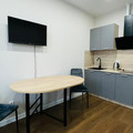● Шкаф ● Дуспальный диван● Стол и 2 стула● ТелевизорКухня:● Стиральная машина● Духовка● Варочная панель● Микроволновка● Чайник