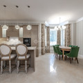 1 этаж: кухня-гостиная, зона барбекю с террасой, холл, каминный зал, спальня, совмещенный санузел;