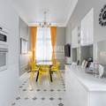 Утреннее солнце освещает большинство окон квартиры , а высокие потолки 3,5 метра обеспечивают простор внутреннего интерьера квартиры. Парадная с широкой лестницей и сводчатый потолок, а также потолок-атриум 6-го этажа наряду с коваными металлическими канделябрами у лифта обеспечивают праздничность будней.