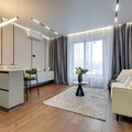 - Эстетичный современный ремонт в спокойной серой палитре, продуманное зонирование. - Вся необходимая техника и мебель: можно сразу жить или сдавать. - Большие окна, много света, виды на динамичный город. - Качественные стеклопакеты — в квартире тихо даже при близости ТТК.